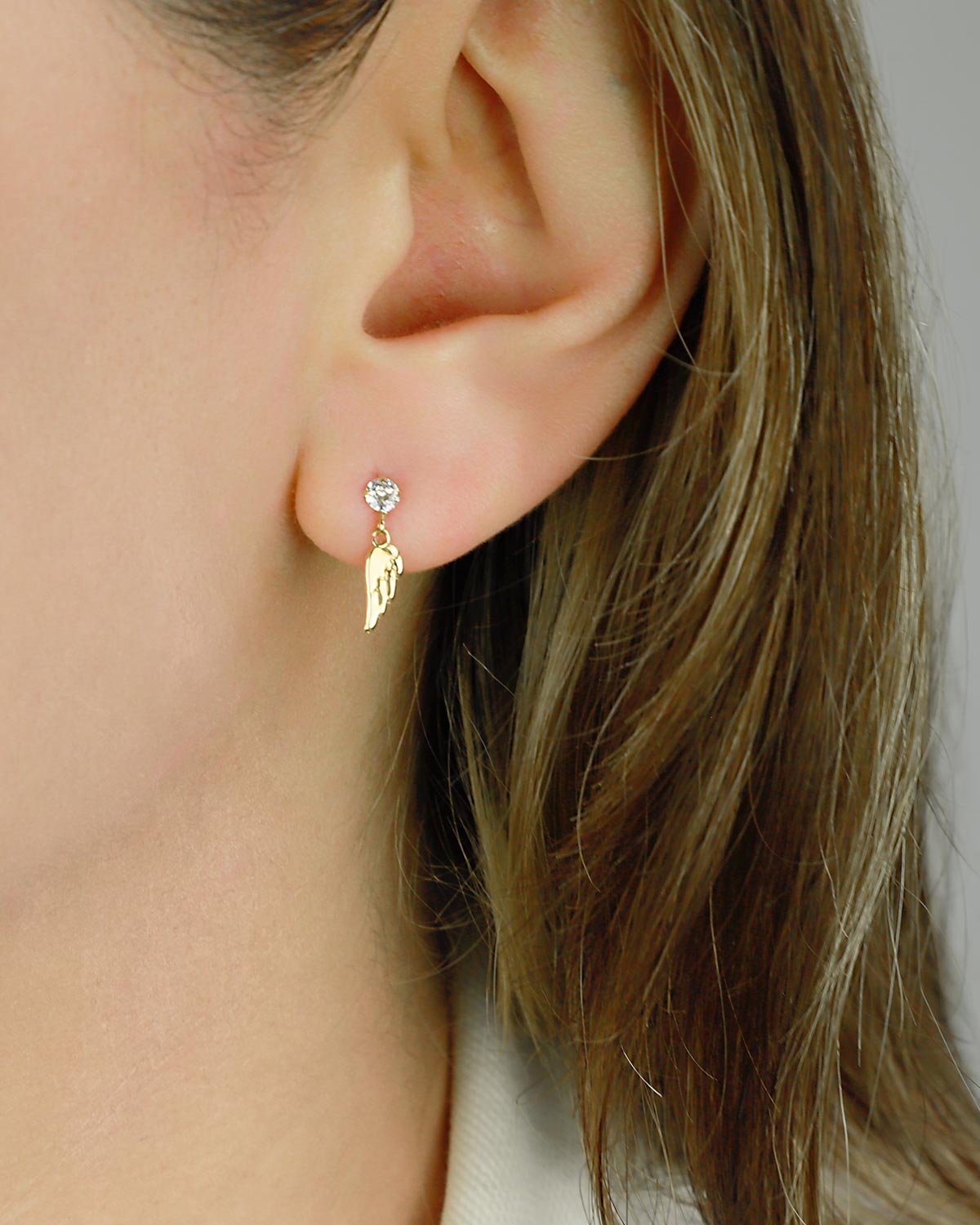 Angel wing earrings, dainty hanging earrings made of solid 10K gold, to stack with your favorite studs or hoops. With screw backs to keep your 10 K solid gold earrings in place.