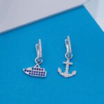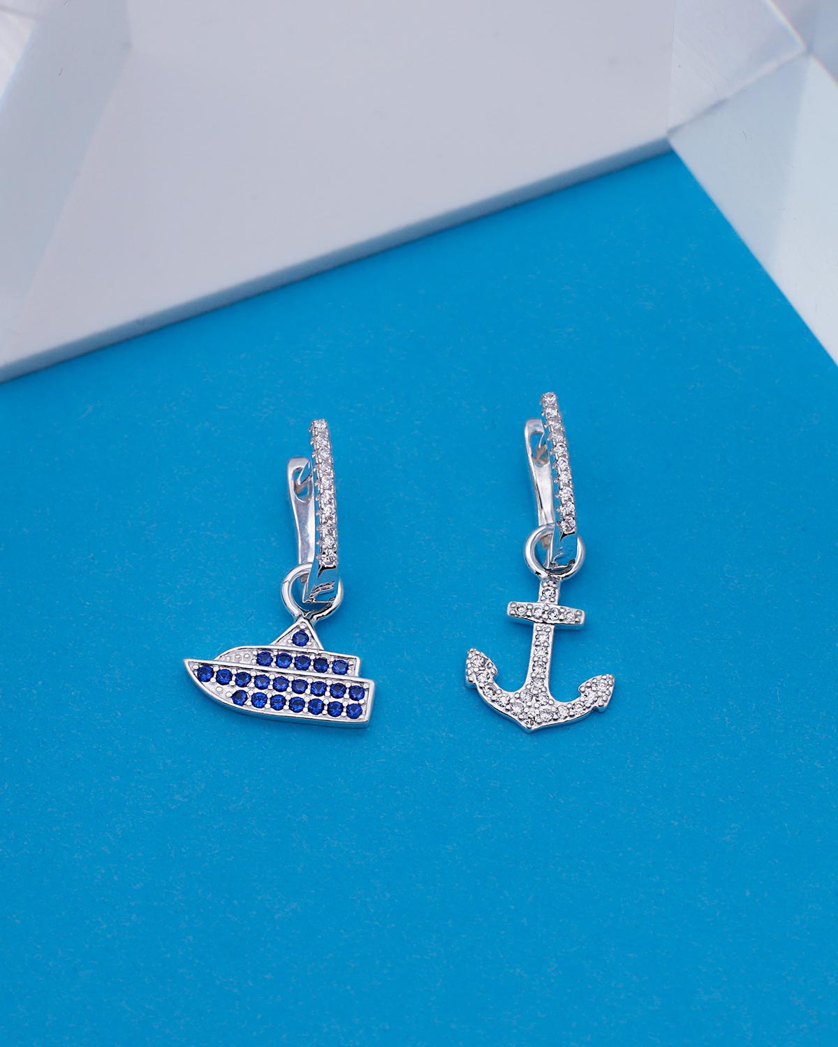 Made of solid 925 sterling silver embellished with white and blue cubic zirconias, these earrings consist of a hoop in the shape of an anchor and a ship, a great gift for those sailors at heart. Our ship & anchor earrings silver are also a fun option to stack with other small stud earrings.